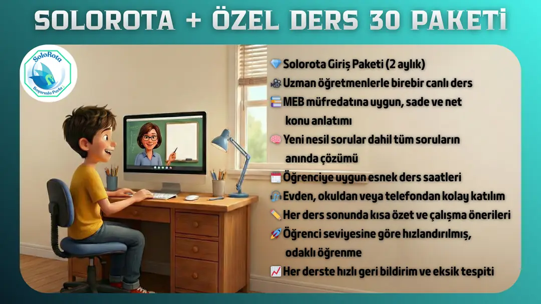 30 SAAT ÖZEL DERS ALANA 2 AYLIK SOLOROTA PAKETİ HEDİYE!