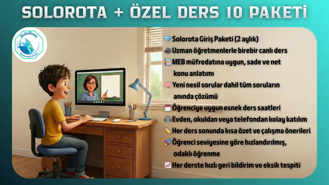 10 SAAT ÖZEL DERS ALANA 2 AYLIK SOLOROTA PAKETİ HEDİYE!
